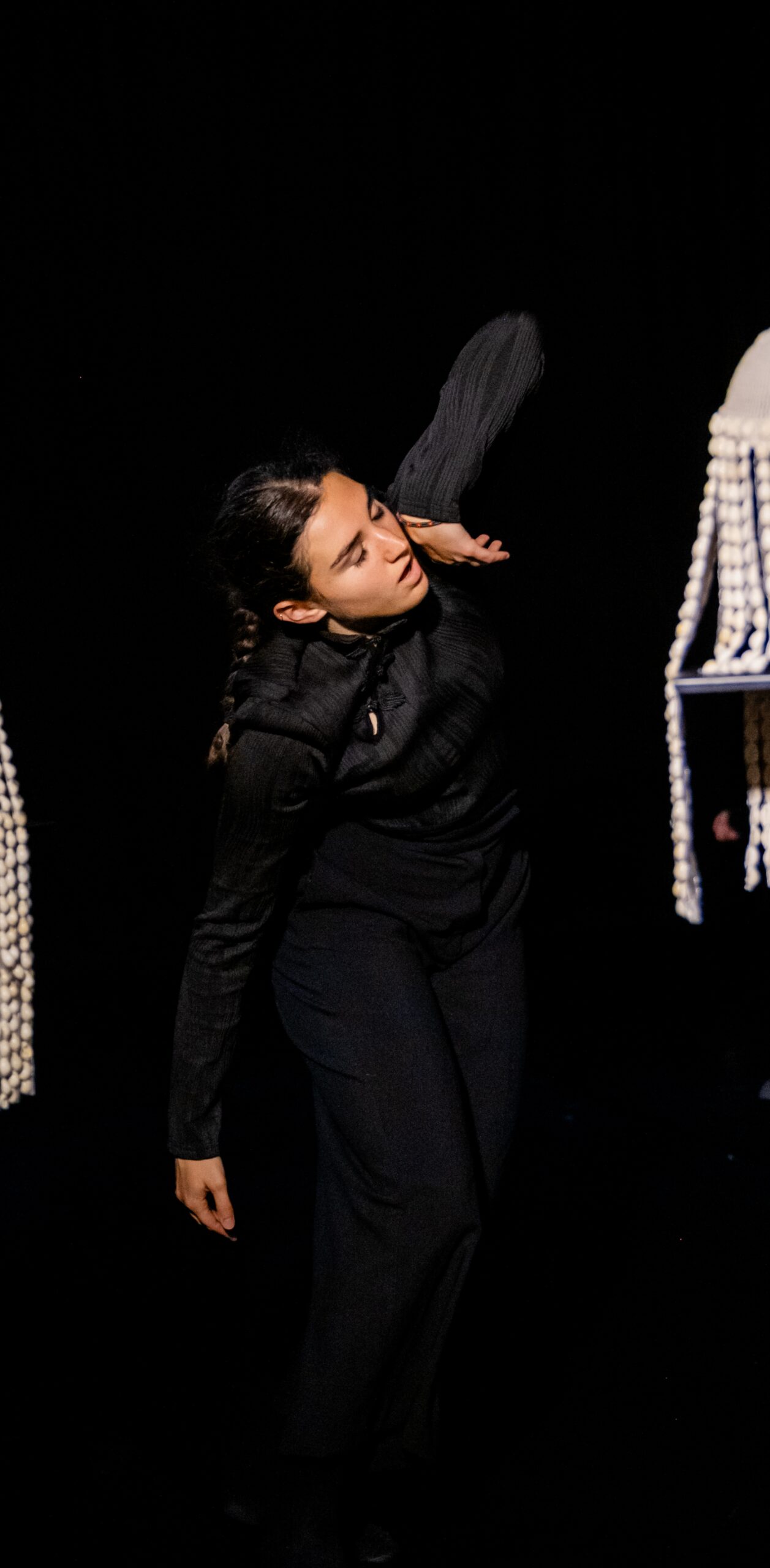 A l’intérieur de cette création, je souhaite mettre en lumière ces empreintes par différents langages artistiques, à travers la matière, les mots, la voix, le son et le mouvement.