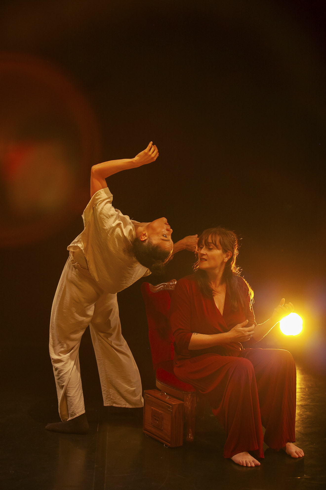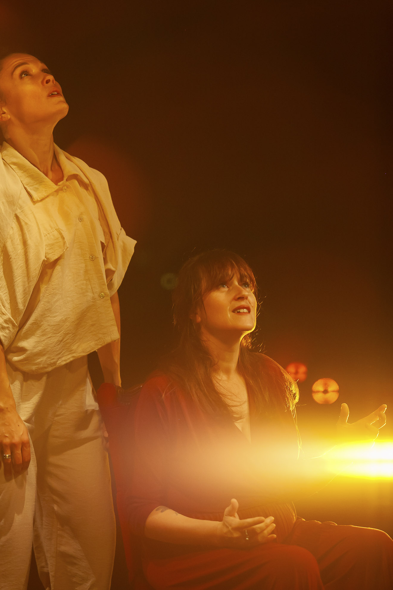 Avec humour et poésie, elles s’efforcent de contenir jusqu’au moment où tout cède. Dans une avalanche de mots, dans une libération du corps elles devront se laisser traverser afin de lâcher prise.